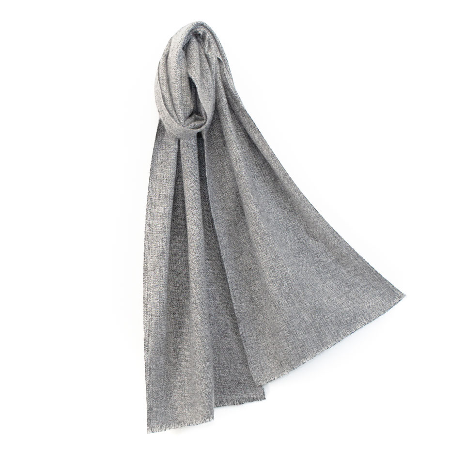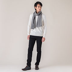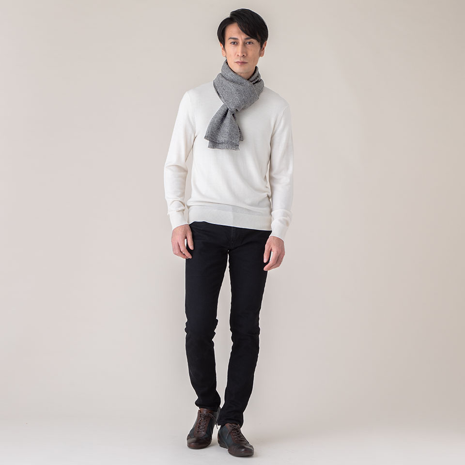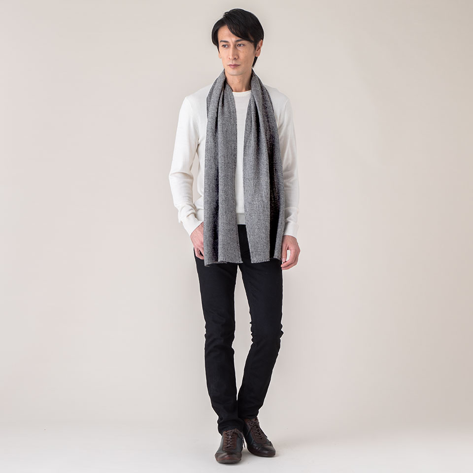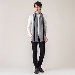 ダブルの厚みのカシミヤ100%マフラーを、男性がプライベートでもビジネスでも着合わせやすいカラーと柄をラインナップしました。